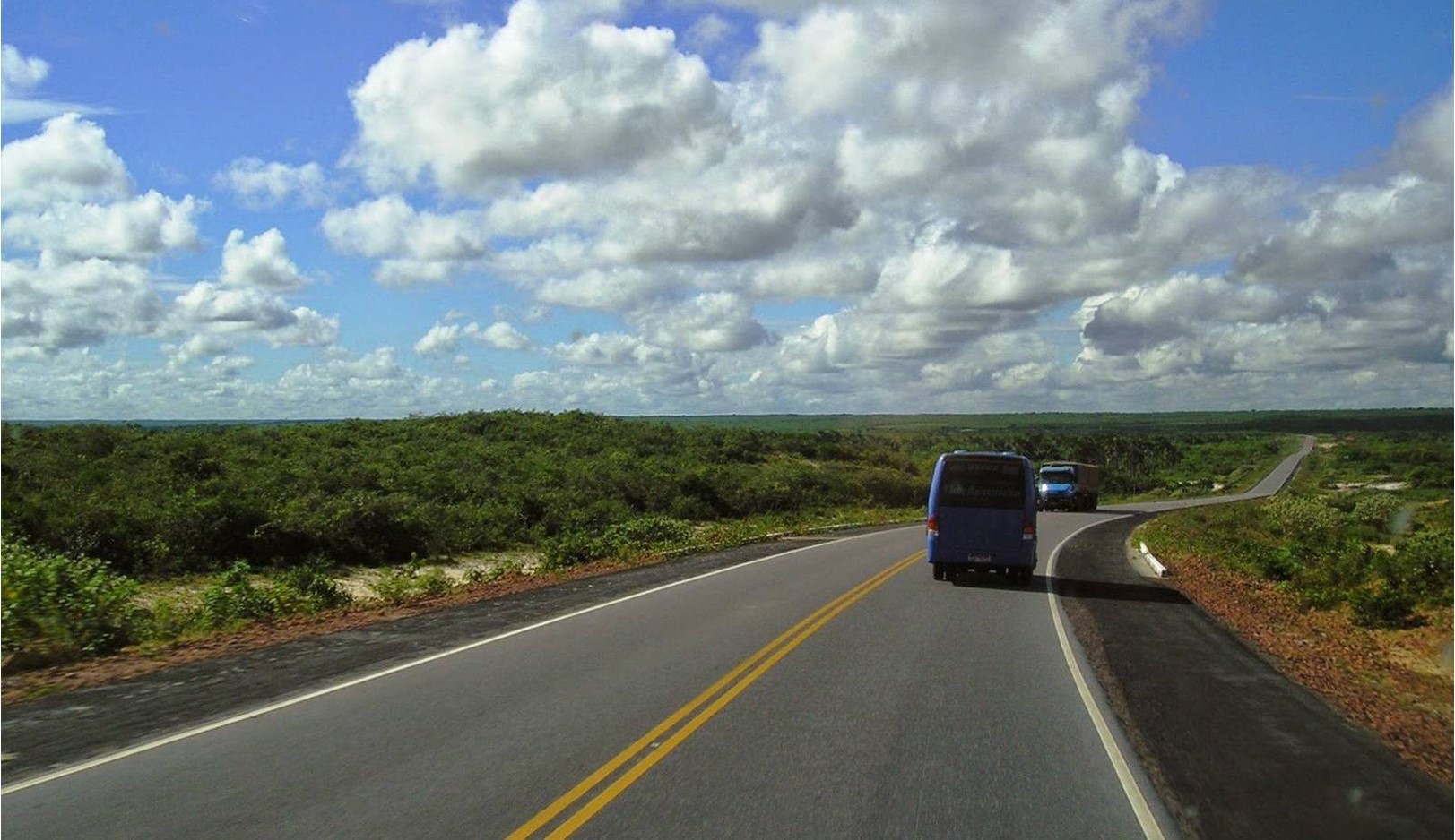 Saída de Barreirinhas em direção a São Luís em táxi, van ou micro ônibus (com ar condicionado) pela estrada pavimentada.